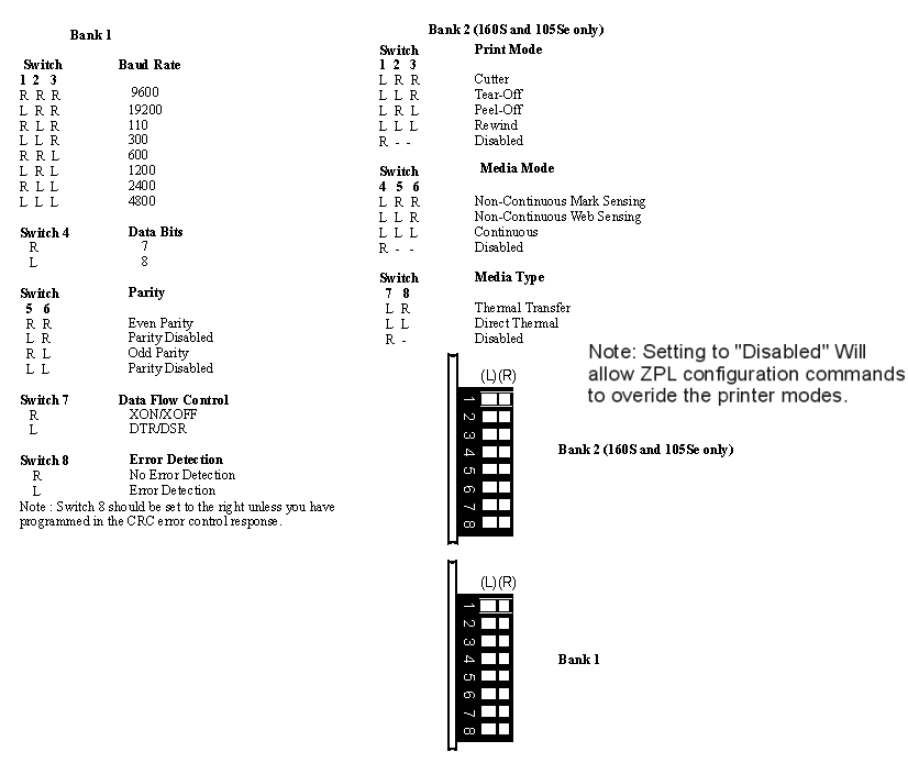 当使用RS232串口通讯时,主机系统和打印机的RS232通讯协议必须匹配一致。这个通讯协议参数可以通过打印机后步的拨动开关来设置。 打印机支持DTR (pin 20)或Xon/Xoff流控制。为了避免通讯缓冲区溢出确信流控制设置和应用系统兼容。