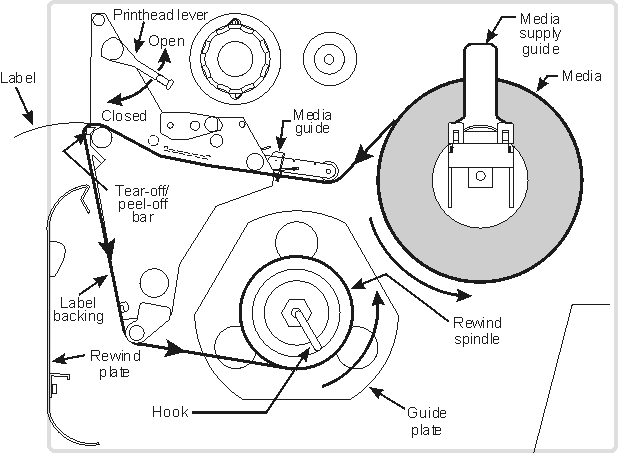 - 当标签回卷到标签回卷轴上后,标签是处于绷紧状态,且标签卷本身和标签穿过的路径是是平行。